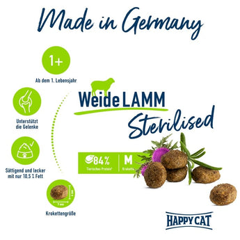 Die erlesene Komposition aus leicht verdaulichem Weide-Lamm, feinem Rosmarin und Mariendistel wurde speziell auf kastrierte Katzen abgestimmt. Die ausgewogene Ernährung ist schmackhaft und sättigend mit nur 10,5 % Fett. Die enthaltenen Mineralstoffe unterstützen zusätzlich ein vitales und glückliches Katzenleben.