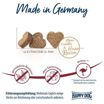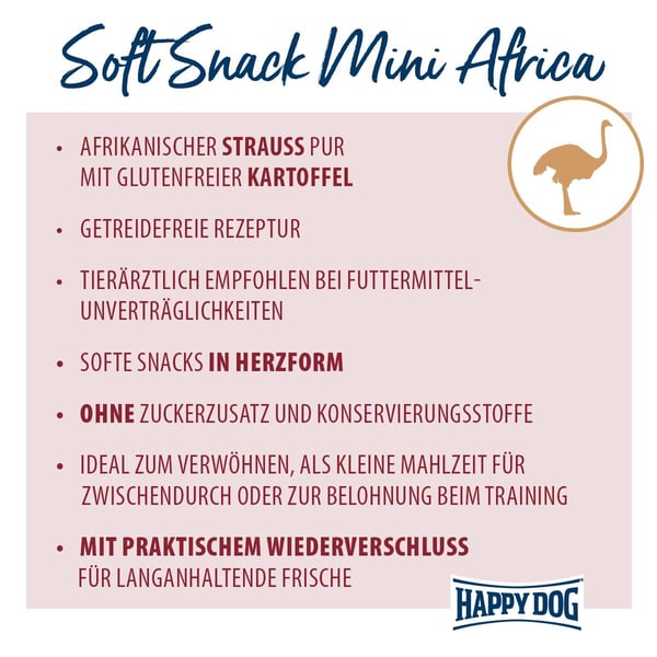 Der softe Snack Mini Neuseeland in süßer Herzform ist ideal zum Verwöhnen deines Lieblings oder als kleines Leckerchen für zwischendurch. Pures Lamm und sehr leicht verdaulicher Reis sind äußerst gut verträglich besonders magen- und darmfreundlich. Die glutenfreie Rezeptur eignet sich auch perfekt für sensible sowie anspruchsvolle Hunde kleiner Rassen. Die Snacks werden ohne den Zusatz von Zucker und Konservierungsstoffen hergestellt und haben einen praktischen Wiederverschluss für langanhaltende Frische. Gönn deiner Fellnase leckere Geschmackserlebnisse!