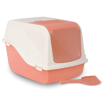 Geschlossene Katzentoilette mit Tür, Schaufel und Filter