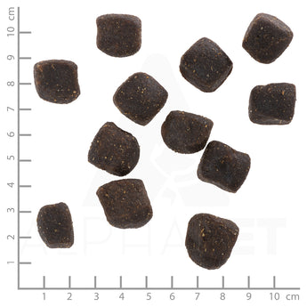 Rohprotein 14 %, Rohfett 11 %, Rohasche 8,5 %, Rohfaser 1,5 %, Feuchte 18 %, Energiegehalt 325kcal/ 100g.