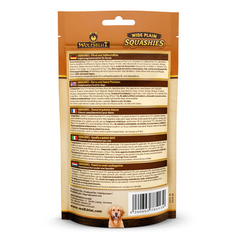 Wide Plain Squashies von Wolfsblut ergänzen die tägliche Ernährung Ihres Hundes. Sie sind eine gesunde Belohnung oder eine kleine Mahlzeit für unterwegs.